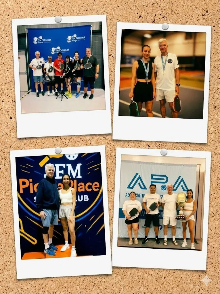 There were some highs and some lows. The first few months of this journey proved to be bumpy, as I was still trying to figure out how to play. In difficult situations, I often found myself thinking I was still on a tennis court and would hit the ball way too hard. Remember I said pickle has a few quirks about it, and one of them is: don’t try to hit the ball so hard, and learn to have patience and wait for the right moments. Not easy for a lifelong tennis player. I’m still trying to unlearn 60 years of aggressive baseline hitting—it’s like trying to get my dog to stop barking at other dogs.